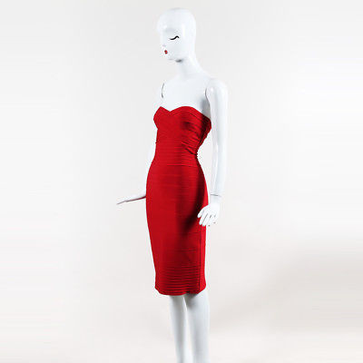 Herve Leger Red Bandage Dress - Named isabelle, this formfitting dress features a v neck and v back.