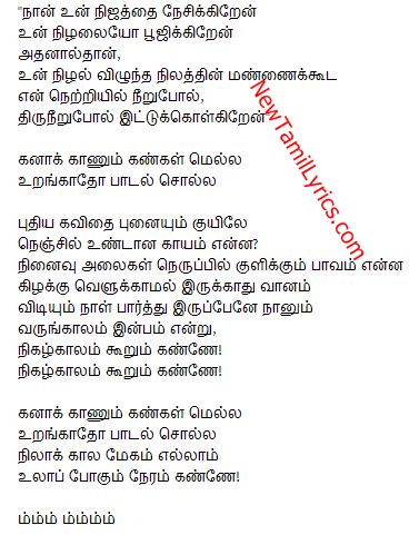 Kangal Neeye Lyrics In Tamil - If you like any of the songs lyrics, you can buy the cds directly from respective audio companies.